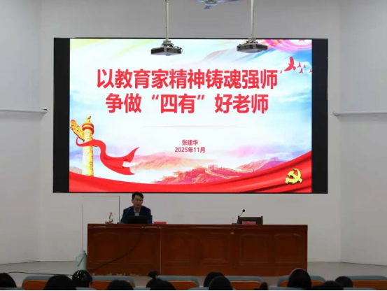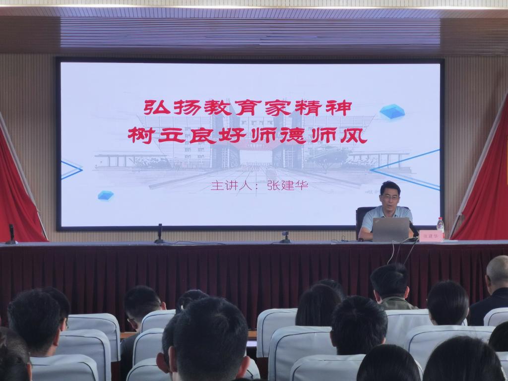 教师工作部部长张建华作题为《以教育家精神铸魂强师,争做“四有”好老师》的专题报告