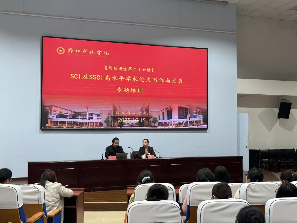 为切实提升教师科研论文写作水平,推动高水平科研成果产出,10月15日下午,我校为新讲堂特邀山东农业大学原外国语学院院长、知名学者石运章教授,作题为《SCI及SSCI高水平学术论文写作与发表》的专题讲座。本次讲座吸引了众多教师参与,现场学术氛围浓厚。